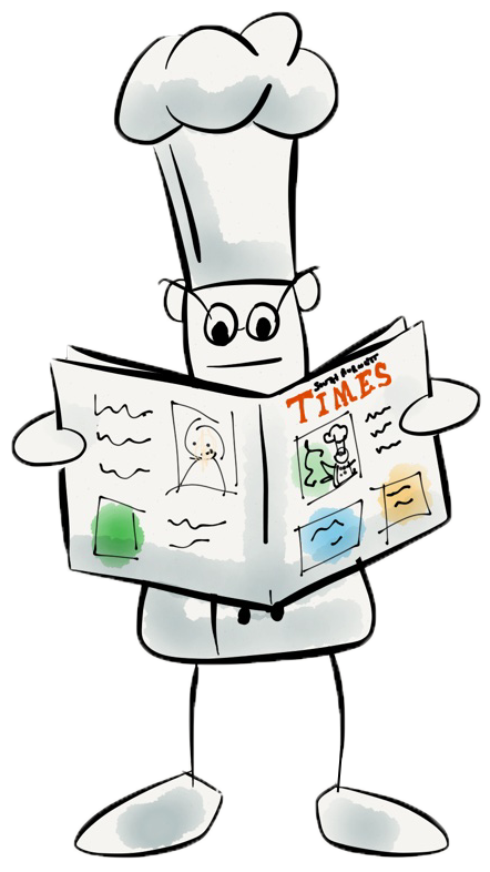 chef reading newspaper