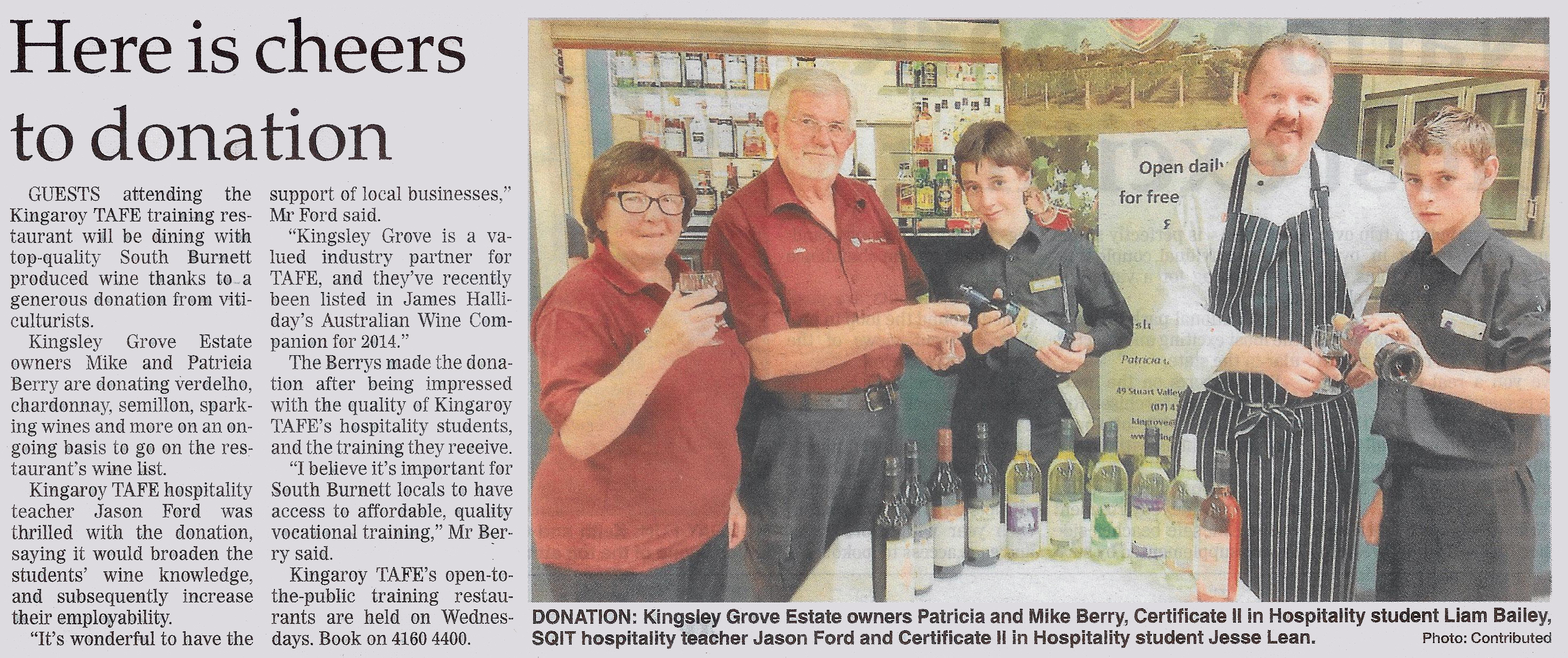 11/09/2013 – South Burnett Mail (Kingsley Grove Wine Donation, Taabinga Room)
