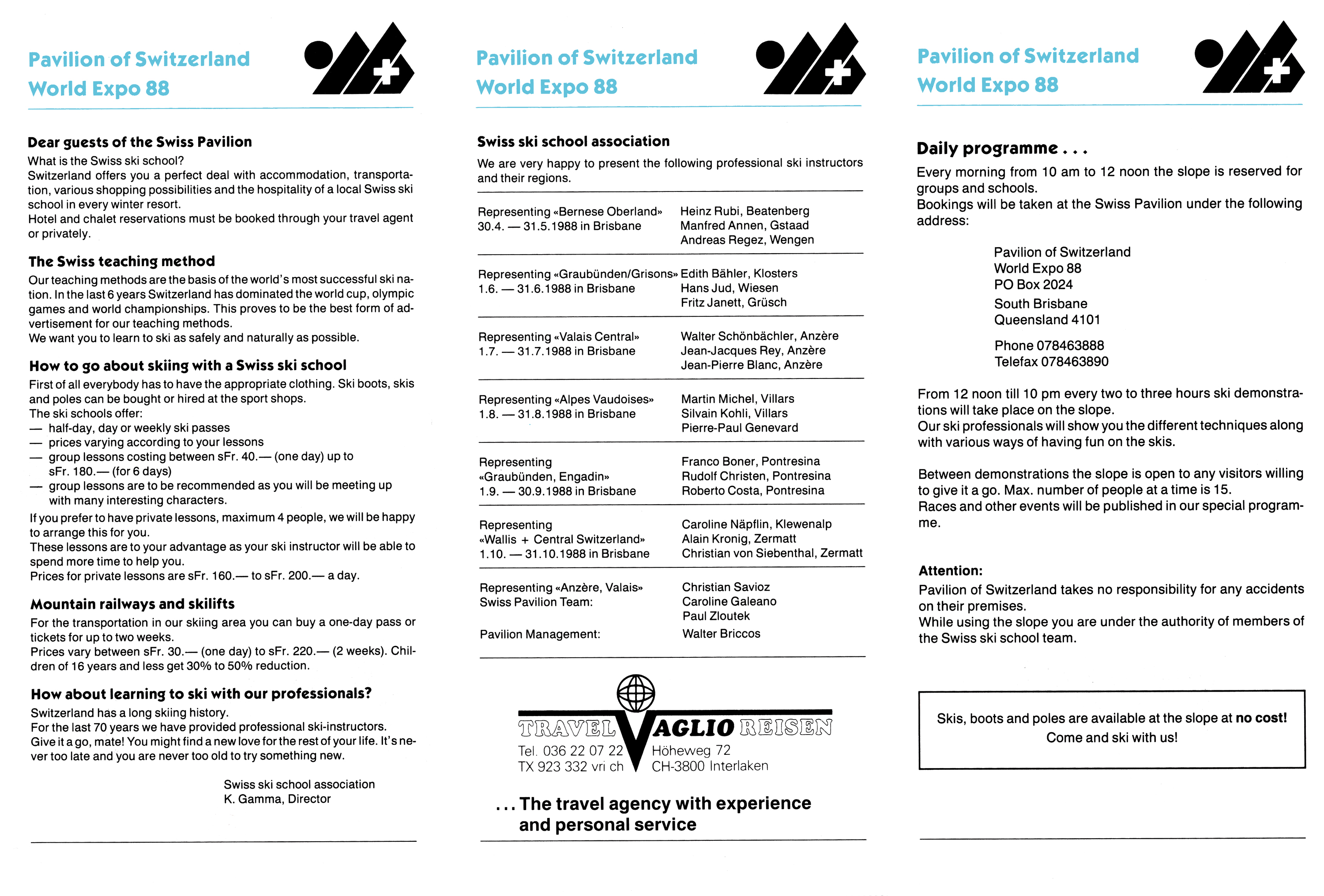 world expo 88 – brochure – pavilion of switzerland – trifold format (inside leaf)