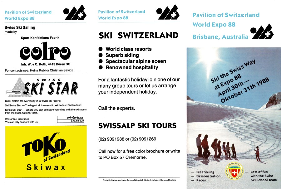 world expo 88 – brochure – pavilion of switzerland – trifold format (outside leaf)